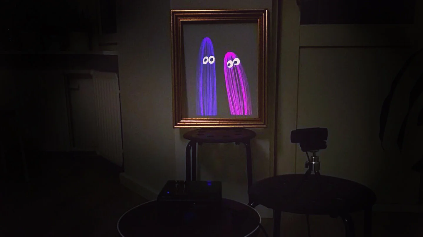 Ghosts on kokeilu, jossa reaaliajassa tapahtuva Processing-koodi otetaan osaksi Madmapperilla projisoitavaa kompositiota. Haamukaverukset saivat äänen modulaarisyntetisaattorista.