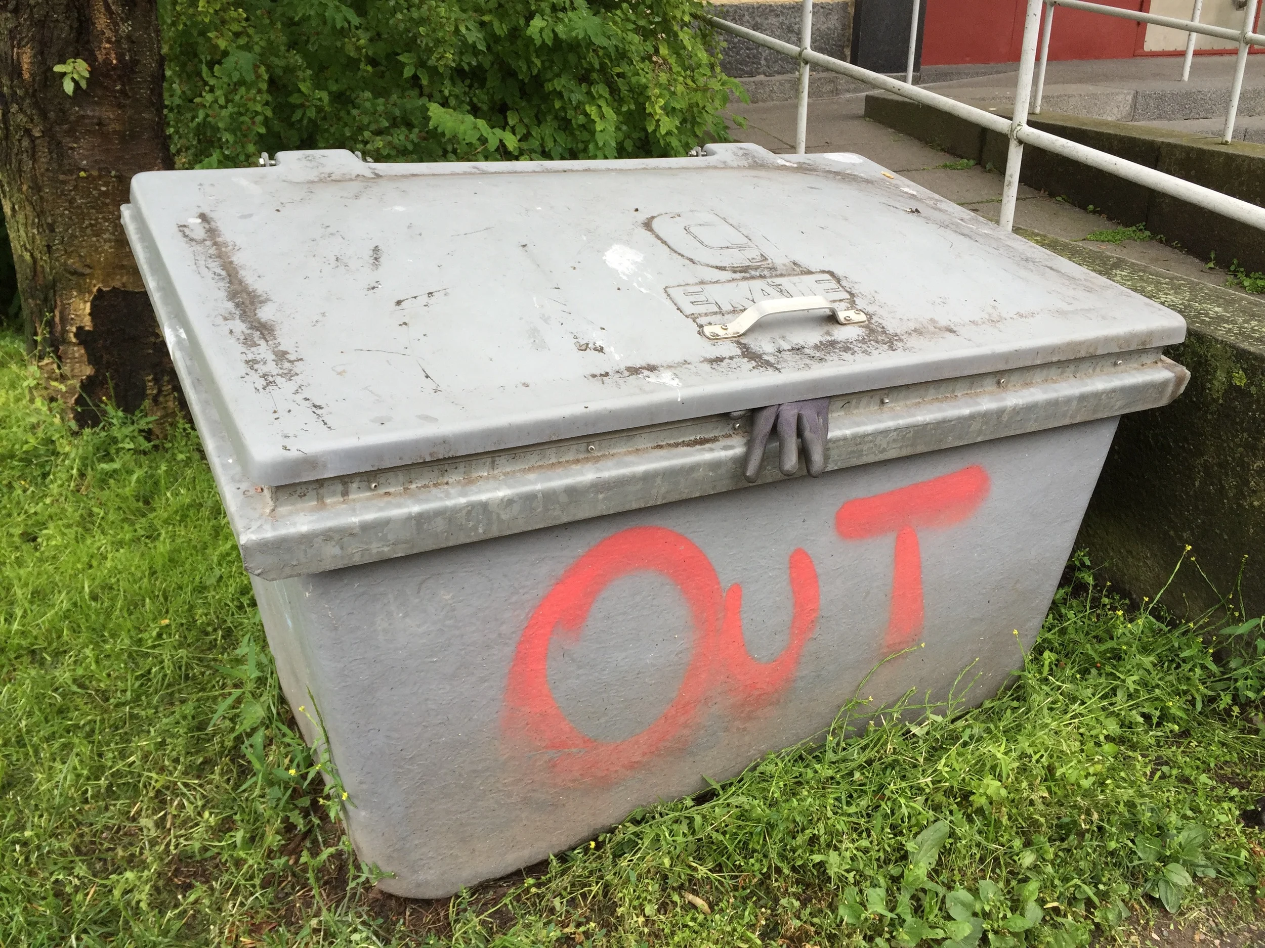 Välillä sattuma puuttuu peliin käsittämättömin tavoin. Maahan pudonneella työkäsineellä tekee mieli tehdä vanha käsijekku. Vasta aseteltuani käsineen laatikon kannen väliin tajuan mielettöman yhteyden: laatikossahan lukee "Out"! Väinölänkatu, Käpylä.